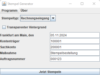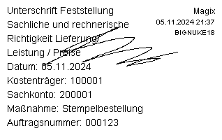 Unterstützt Rechnungsstempel mit Signatur, Computer-Name und Login-Name sowie einfachen Posteingangs und Adressstempel.